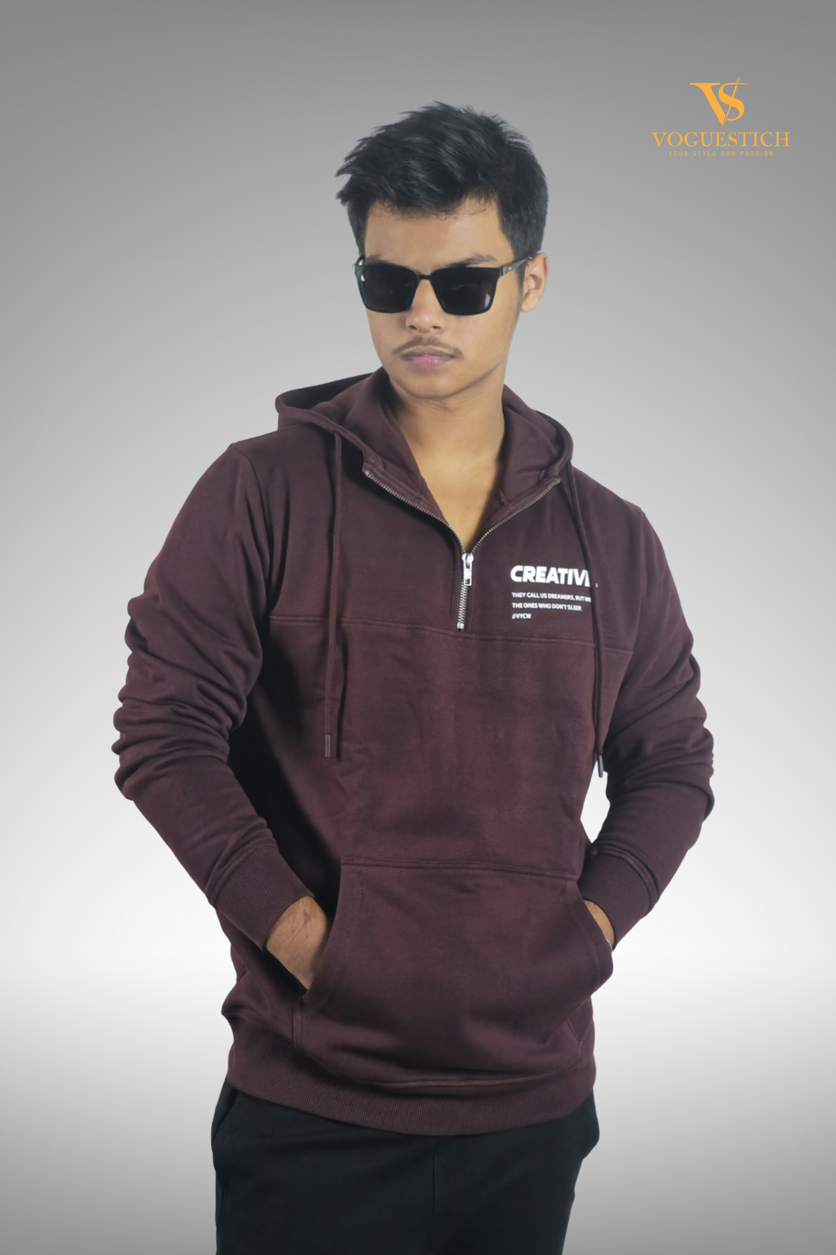 Men Dk Brown color Hoodie with half zipper Tk 2090