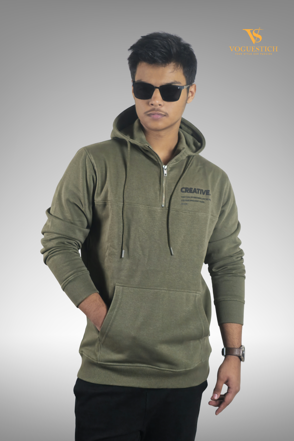 Men Green color Hoodie with half zipper Tk 2090