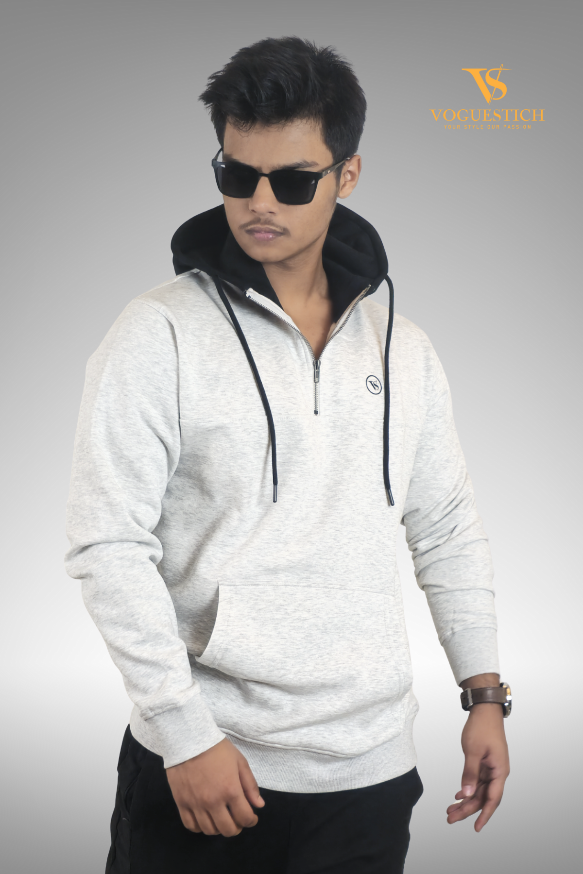 Men Grey with Black contrast half zipper Hoodie Tk 2090